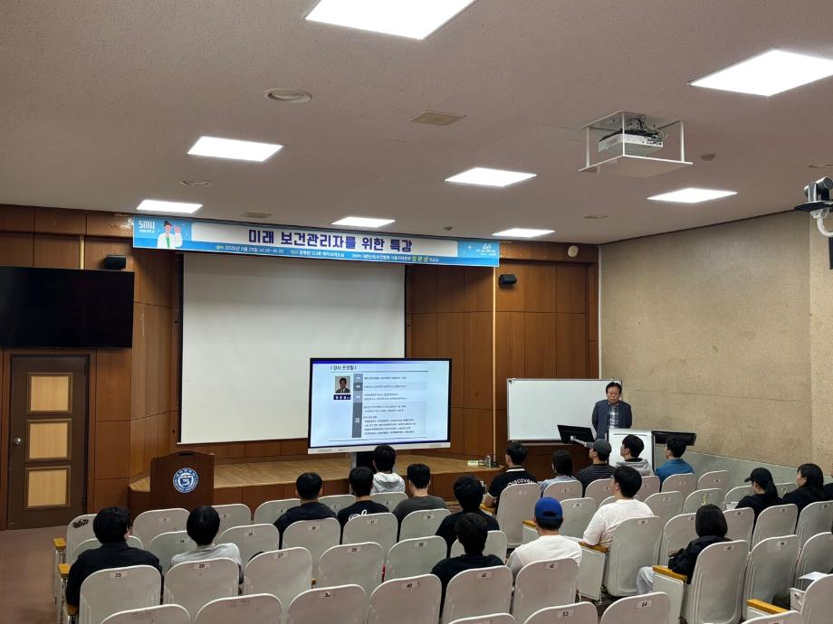 본문 시작 홈으로 커뮤니티 학과소개 진로 및 취업 교수소개 학과과정 커뮤니티 홈페이지가이드 포토갤러리 학과공지 학사일정 포토갤러리 학생회 학과영상 보건안전학과 인스타 보건안전학과 블로그 포토갤러리 페이스북 트위터 프린트 임원특강: 대한산업보건협회 정문생 국장님 보건안전학과 764 2025-10-01 보건안전학과는 대한산업보건협회 정문생 국장님을 모시고 9월 29일(월) 학술관 제2컨퍼런스홀 102호실에서 임원 특강을 진행하였습니다. 목록 이전2025학년도 청룡체전 (9.24~9.26) 다음 보건안전학과 전공관련 현장견학 담당부서 : 보건안전학과 담당자 : - 연락처 : 043-649-1777 최종수정일 : 2024-10-26 만족도조사 만족도 조사 이 페이지에서 제공하는 정보에 대하여 만족하시나요? 매우만족 만족 보통 불만족 매우불만족